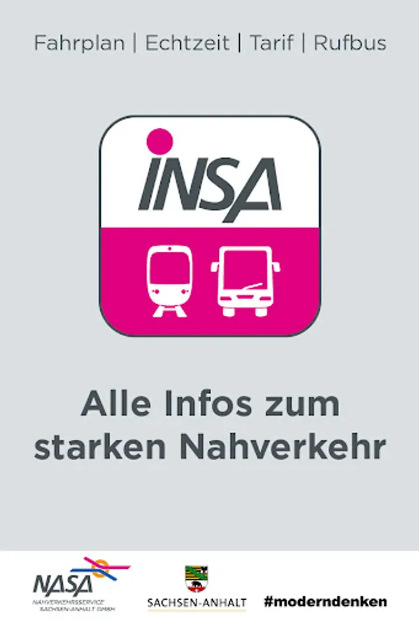 INSA - alle Infos zum starken Nahverkehr is a service provided by the Nahverkehrsservice Sachsen-Anhalt GmbH (NASA) in cooperation the local transport operators.