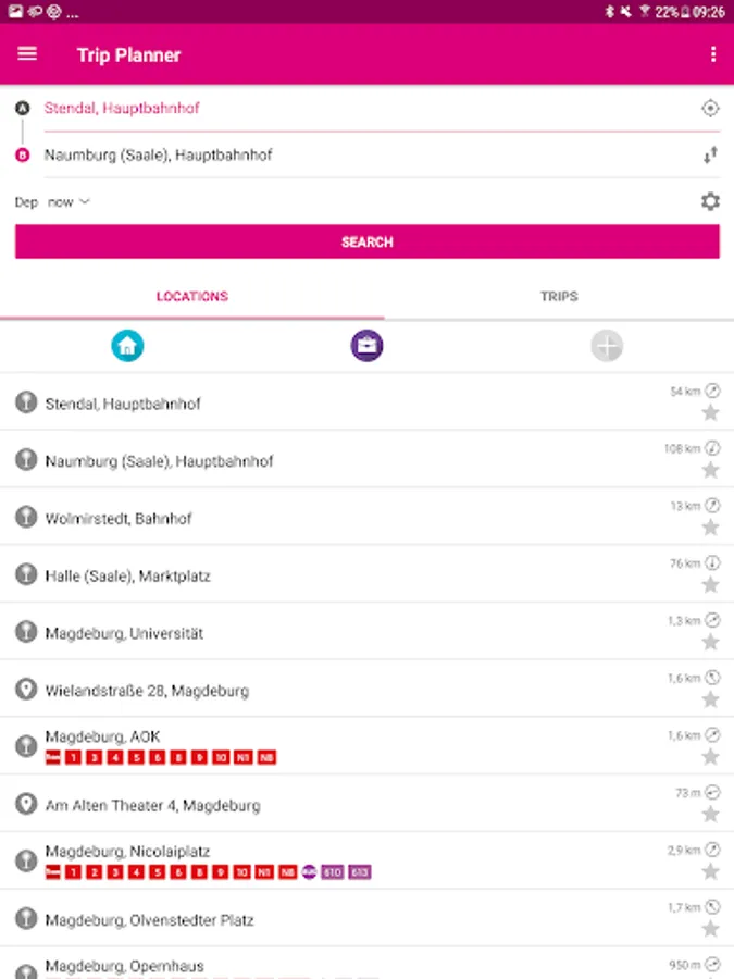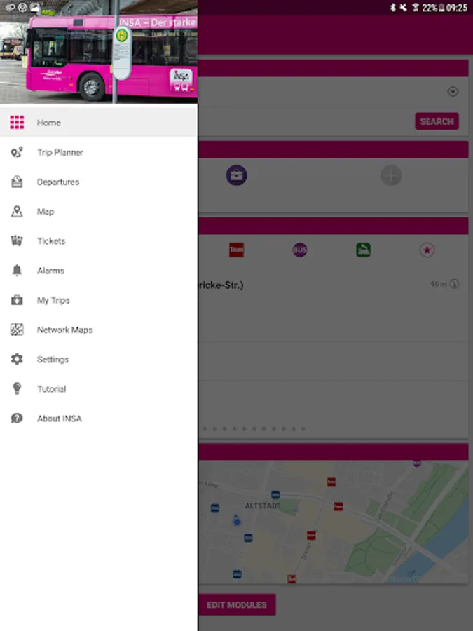 Easy journey planning from your current location to a train station, a stop or an address. INSA knows every timetable of the public transport companies in Saxony-Anhalt, in the MDV as well as the nationwide railway traffic. INSA automatically finds the most suitable stops in the surrounding area.
