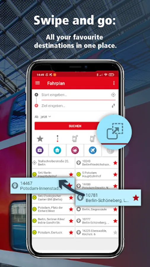 - Contacts: Addresses from your contacts can be used in the start/destination search (e.g. search for a connection to your best friend Petra by typing in “Petra”)
