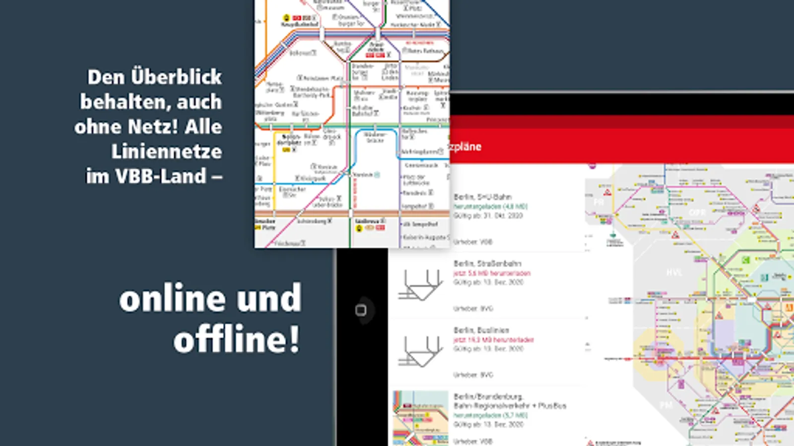 - All route networks in the network area (Berlin and Brandenburg) are stored in the app