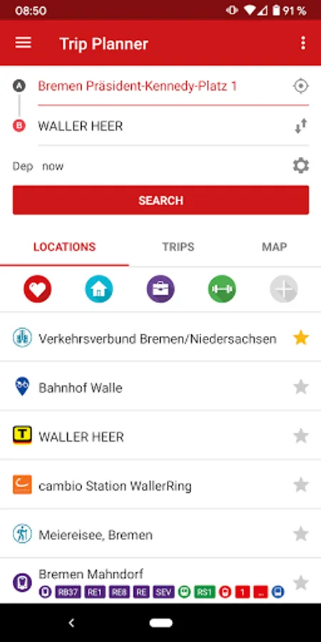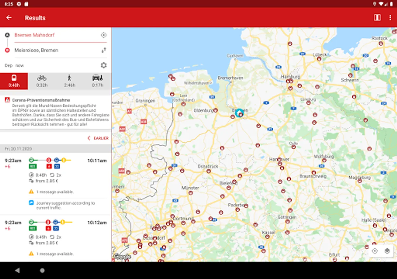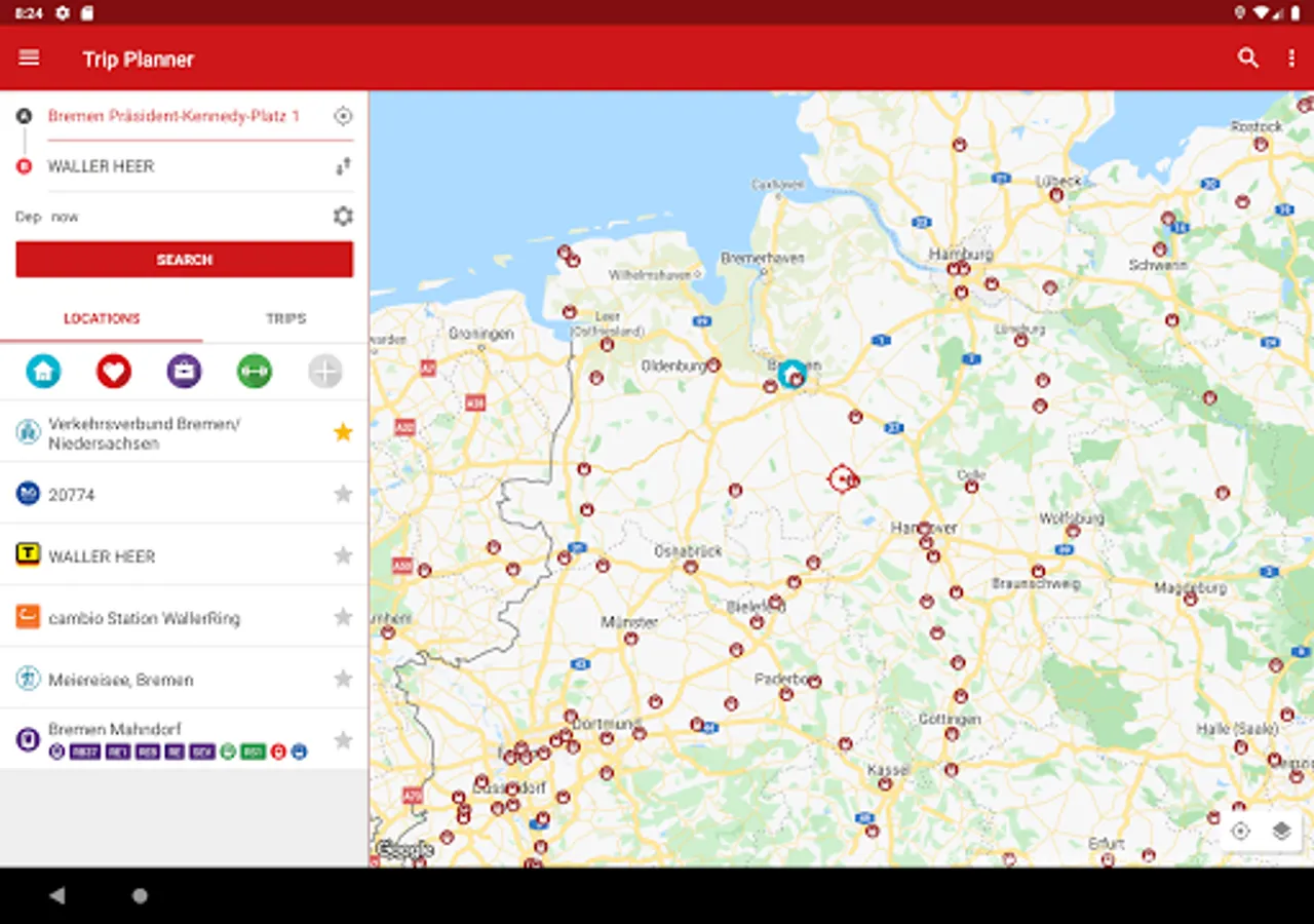 RoutePLANING: places, destinations, addresses or stops within Bremen, Lower Saxony, Bremen, Hamburg and Rostock with train information for all of Germany