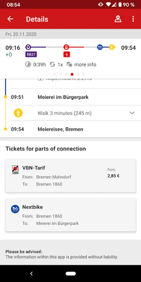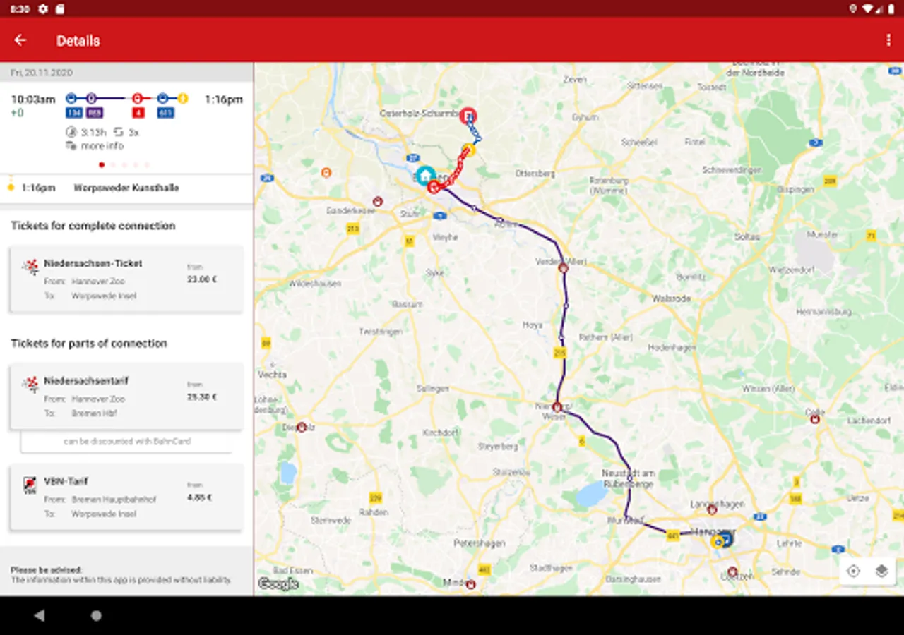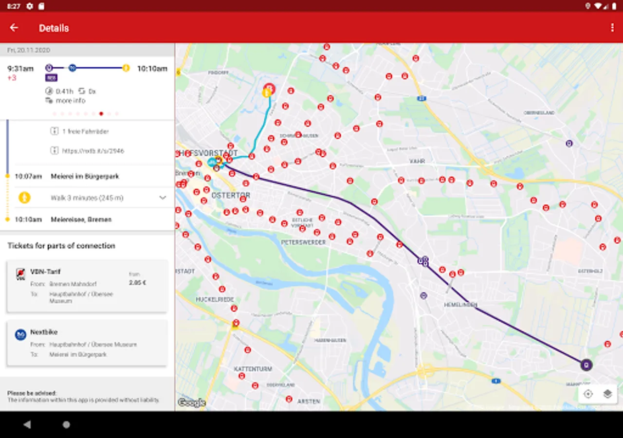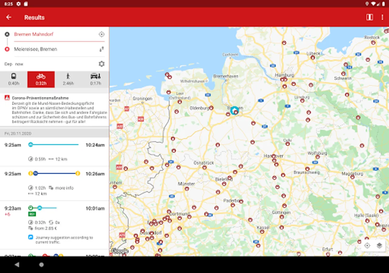 The app was funded by Landesnahverkehrsgesellschaft Niedersachsen GmbH (LNVG), Die Senatorin für Klimaschutz, Umwelt, Mobilität, Stadtentwicklung und Wohnungsbau (SKUMSW), Zweckverband Verkehrsverbund Bremen/Niedersachsen (ZVBN) and the Federal Ministry of Transport and Digital Infrastructure (BMVI) through the funding program "Digitalisation of local transport systems".