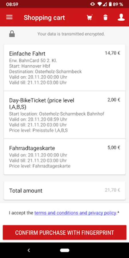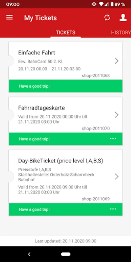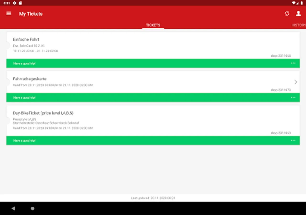 Mobile tickets are available for all of Germany with Deutschland-Ticket as well as for all public transport services within the Bremen/Northern Saxony transport association (VBN), South-Lower Saxony transport association (VSN), regional trains within the Niedersachsentarif (Lower Saxony).