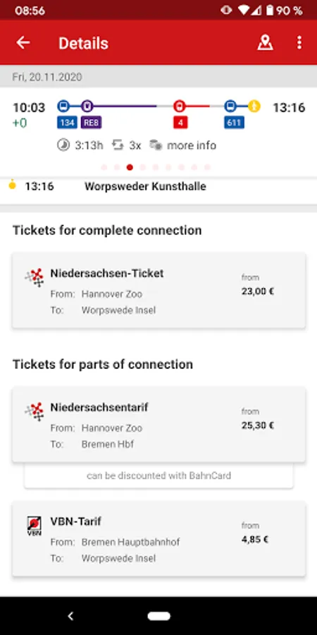 RouteCOST: price information for public transport tickets of Niedersachsentarif (Lower Saxony), VBN (Bremen/Lower Saxony) and other transport associations.