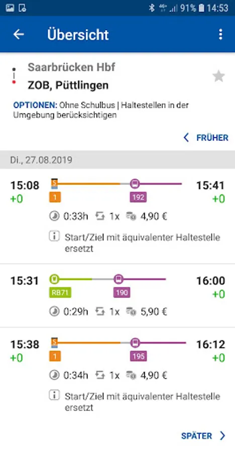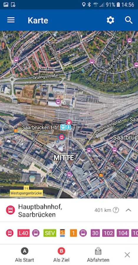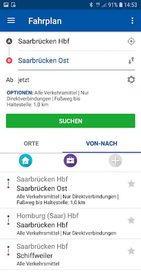 The “Saarfahrplan” is the Saarland transport association’s official App with a mobile routing platform and an integrated saarVV online shop for the purchase of mobile phone tickets from a selection of tickets.