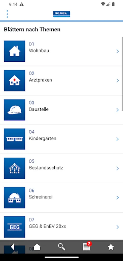 The app is constantly being expanded through monthly thematic activations, and push notifications are sent to the user in the event of important normative changes. The contents of quick knowledge are accessible to all users, the premium contents can be loaded by legitimation of the company Rexel Germany and participation in the seminar.