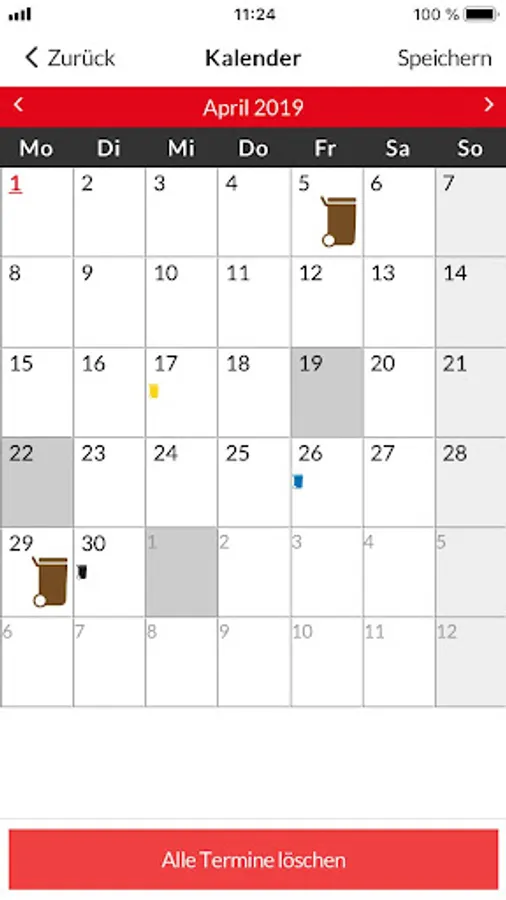 The application is very easy. At the beginning of the year, take the individual waste calendar of your community and place the corresponding barrel symbols on the prepared annual calendar in your app.