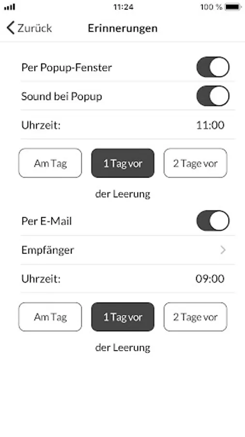 Now you can decide how and with which time lead you want to be reminded that the corresponding ton is "tuned". You will then be "awakened" by e-mail or push message *.