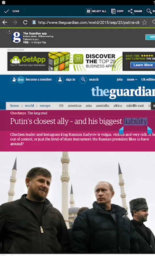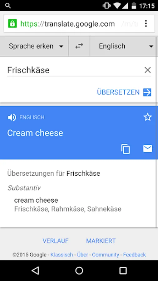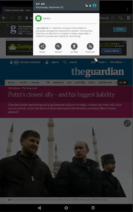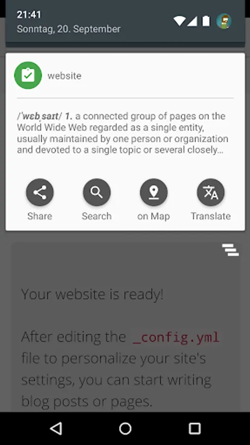 πTranslate: The translate action jumps right to Google translate and uses your preferred language.