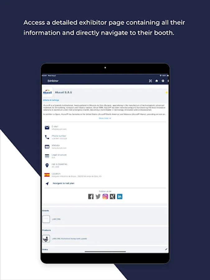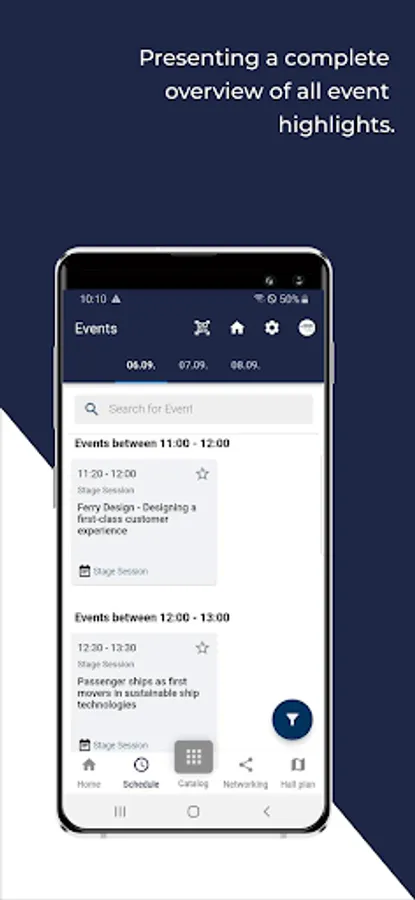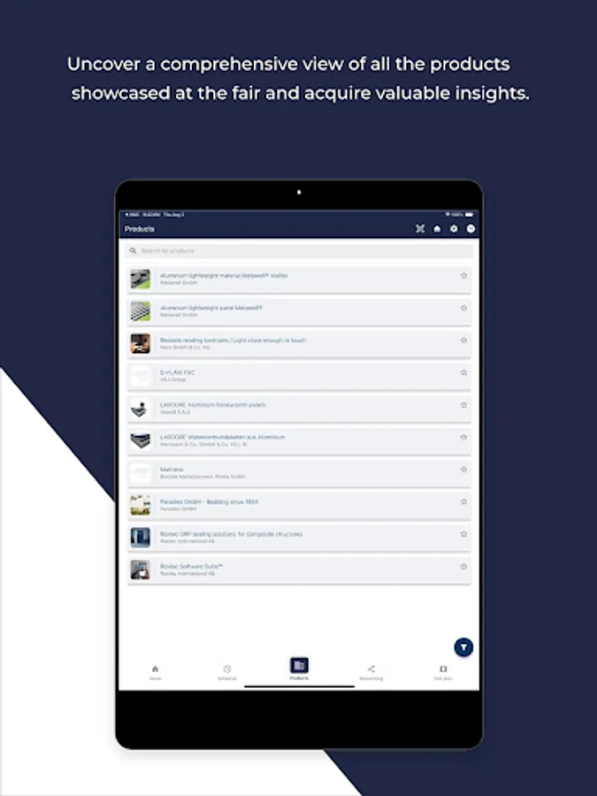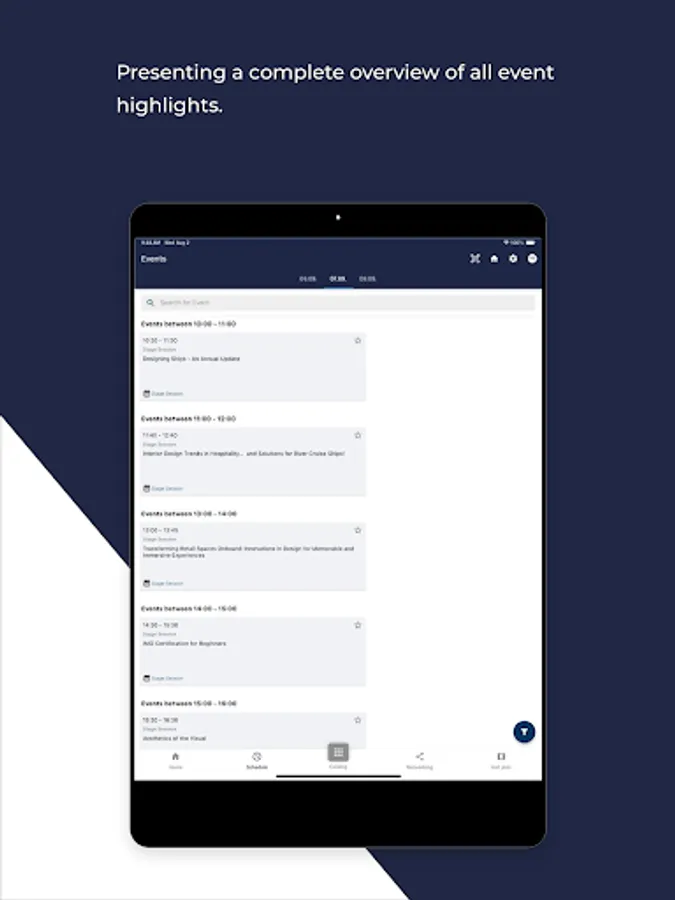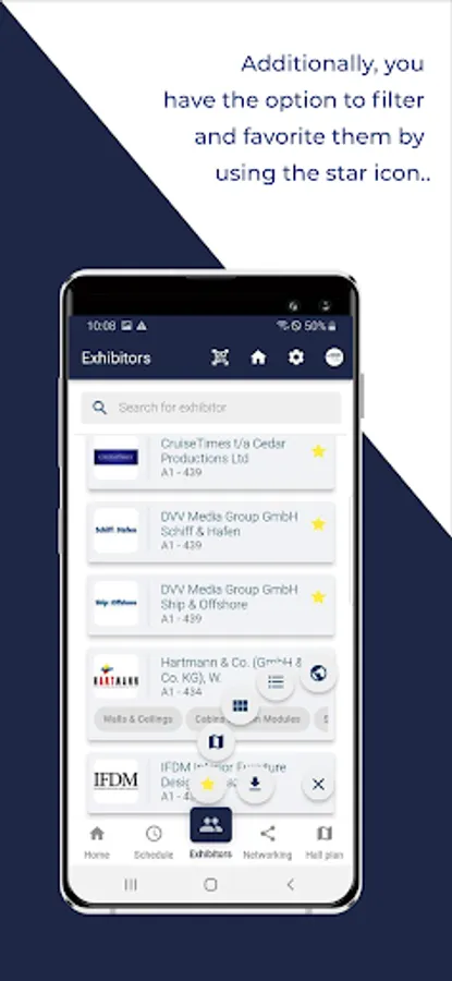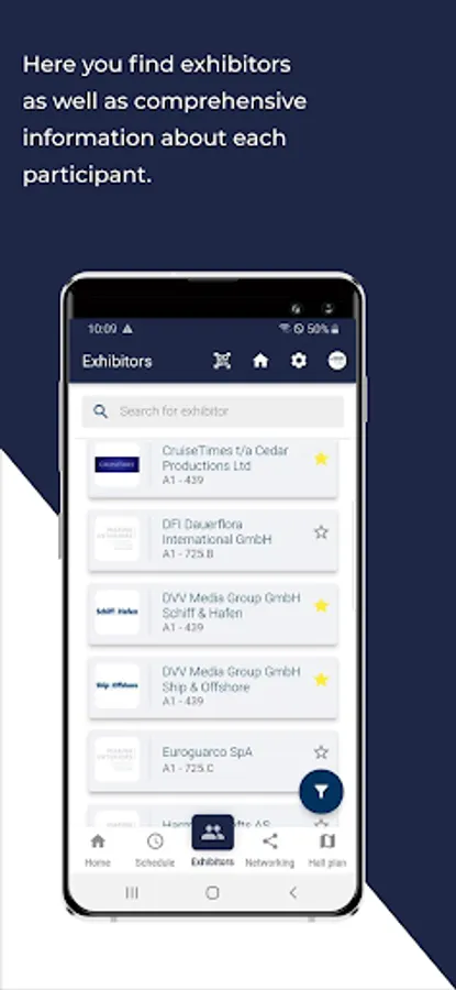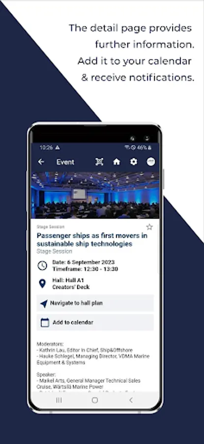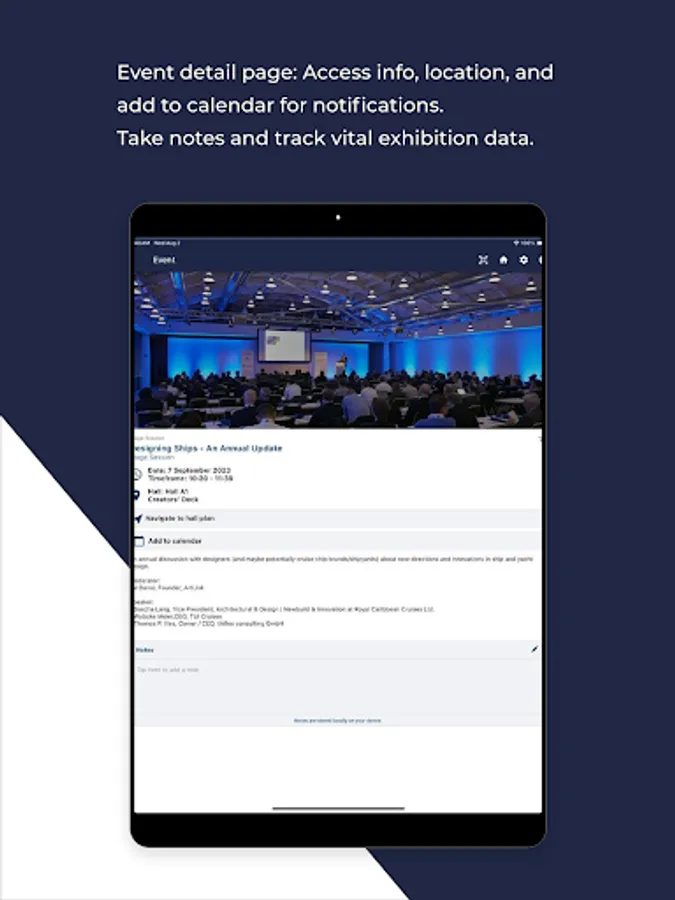 Download our Marine Interior App to make your visit even more successful and exciting: Within the exhibitor list, you'll gain insight into all participating companies, including their contact information, and effortlessly find their booths by utilizing the hall map. Learn about our distinguished speakers and the engaging event program. Furthermore, you'll find information on how to join the "Wine o'clock" event, a sociable afternoon networking activity.