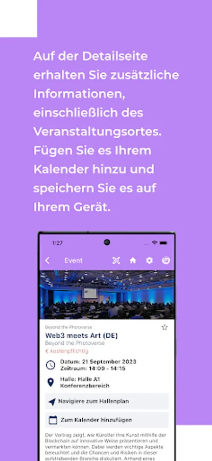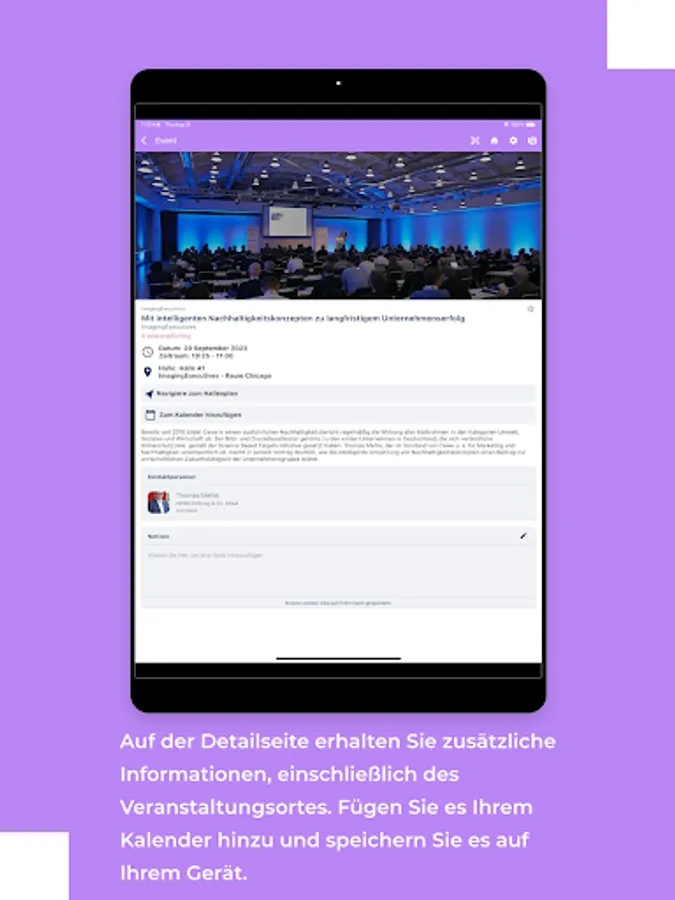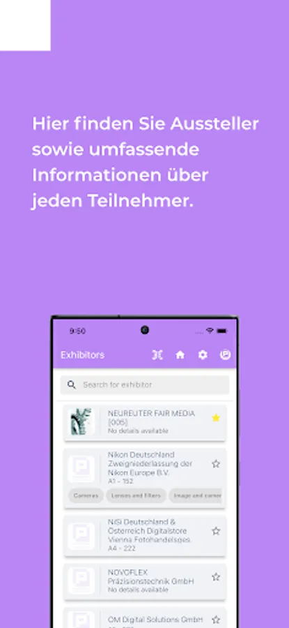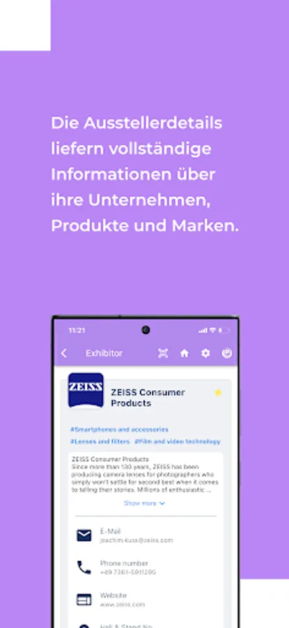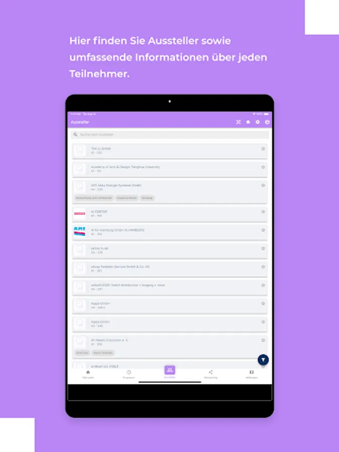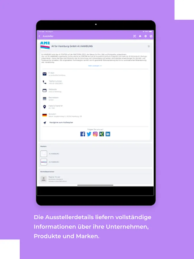 Exhibitor, product, and brand directories, along with an interactive hall map, the program, and all important information about travel, opening hours, and visitor services. With the new Networking feature, you also have the opportunity to easily and efficiently capture contact information and use lead tracking as an additional service free of charge.