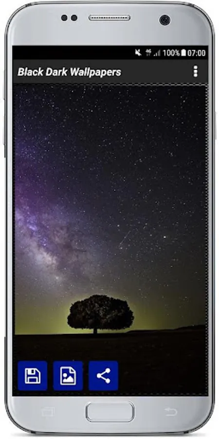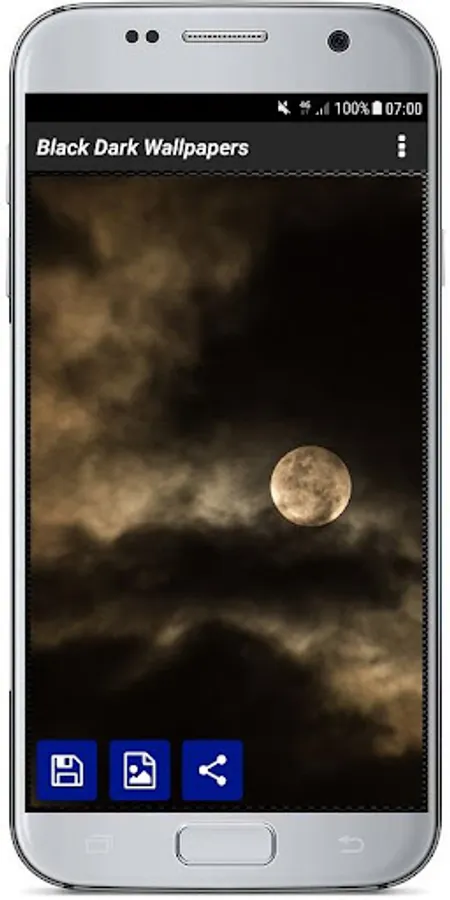 In addition to simply saving the desired black background images, our app also allows you to set the respective image directly as background image on your smartphone with just one click. Simply click on the icon with the "Image" and the desired dark wallpaper will be set as the background image for your smartphone. In addition, the image is also stored in the directory "Dark Wallpapers". So you are guaranteed to find it again if you want to change the background again.