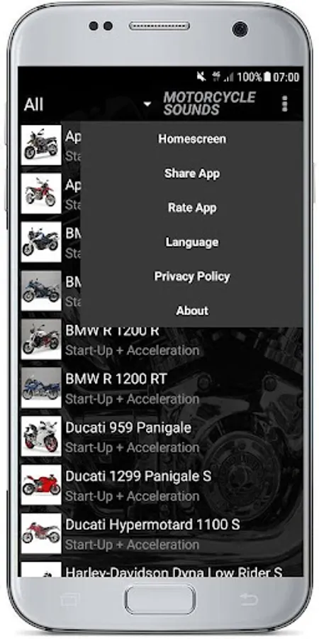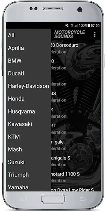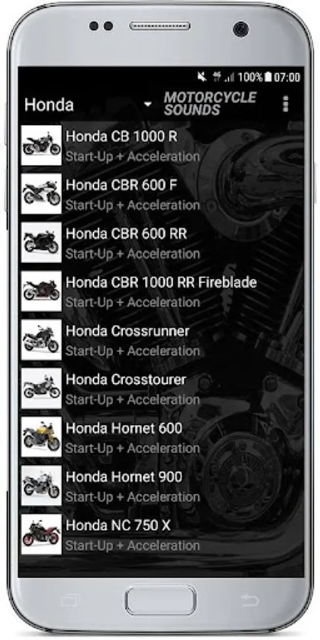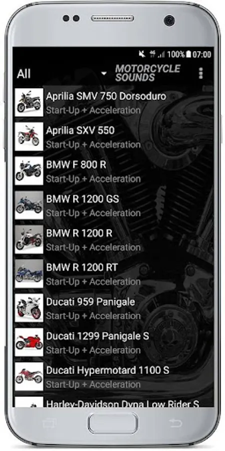 So the app includes all the famous brands and models. This includes bike sounds of all types such as: