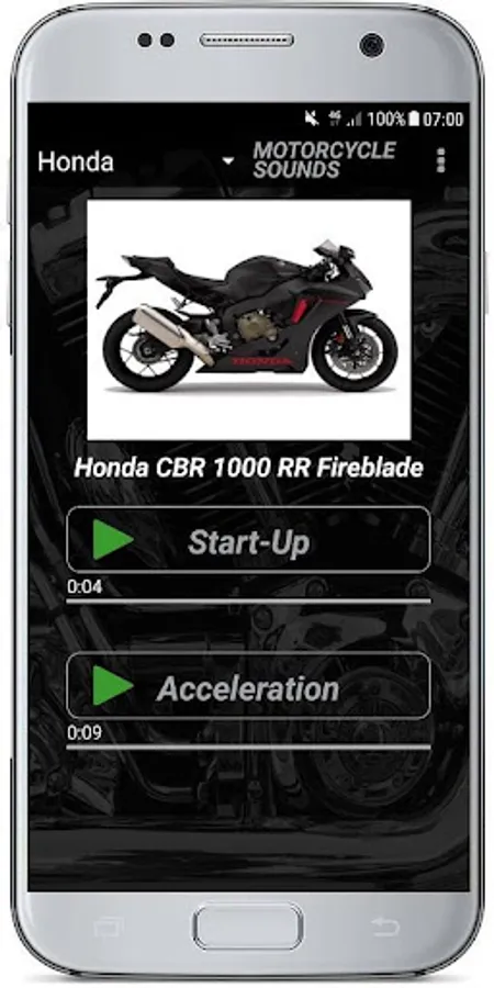 Motorcycle Sounds is the app for all motorcycle fans. With over 100 free motorcycle sounds, you can listen to the pleasurable engine sounds of all popular models from anywhere by your smartphone. Two high quality bike sounds have been integrated for each motorcycle. On the one hand you can listen to the engine start and on the other hand you can let the exhaust sound play while accelerating.
