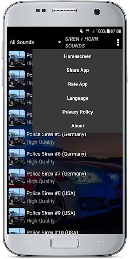 Then simply share us with your friends via the menu and let them enjoy the best and funniest siren and horn sounds.