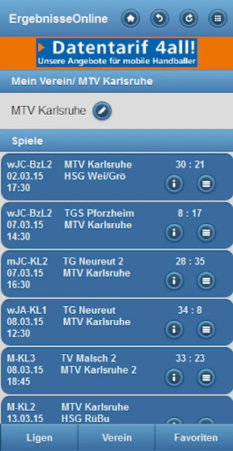 ResultsOnline is a module of Handball4all AG and enables the mobile retrieval and mobile input of handball results in connection with SpielplanOnline.