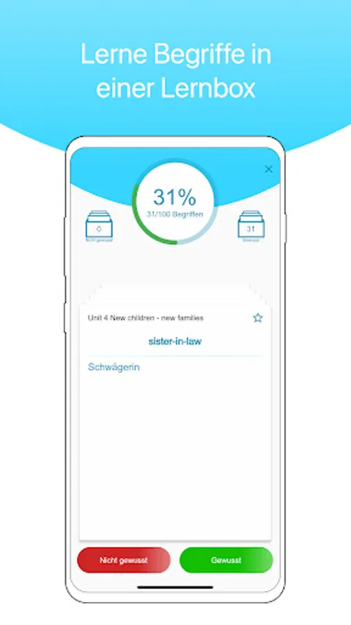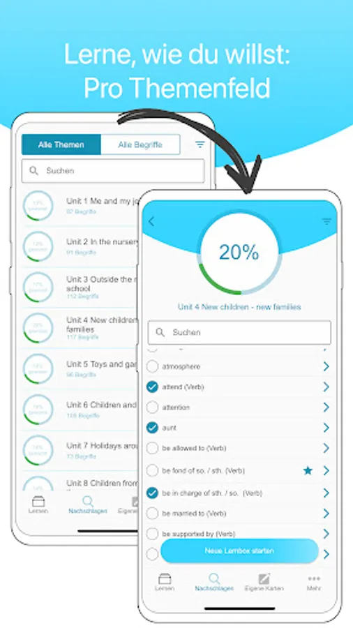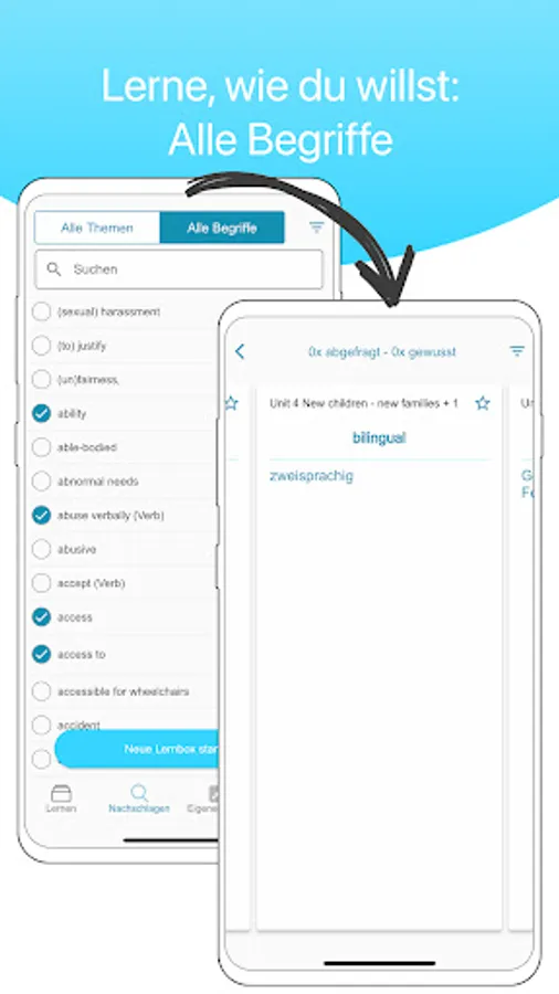 • Customize your LernBOX: You can create and learn your own vocabulary.