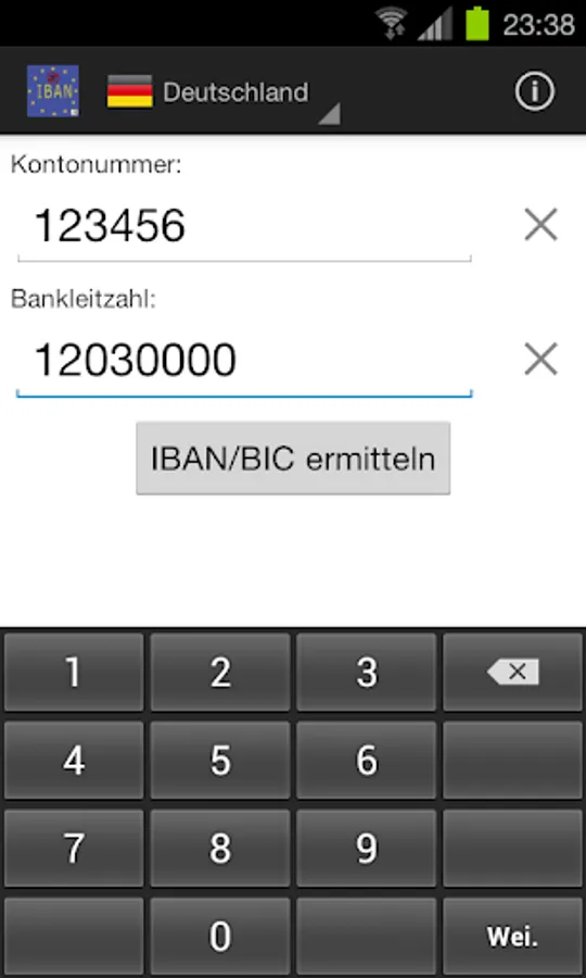 With the IBAN-ometer Lite the curse will be banned and the conversion to SEPA becomes mercy. It calculates the IBAN and BIC from the account number and bank identification code which you put into the system.
