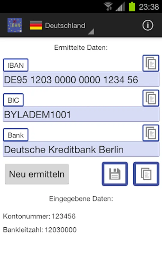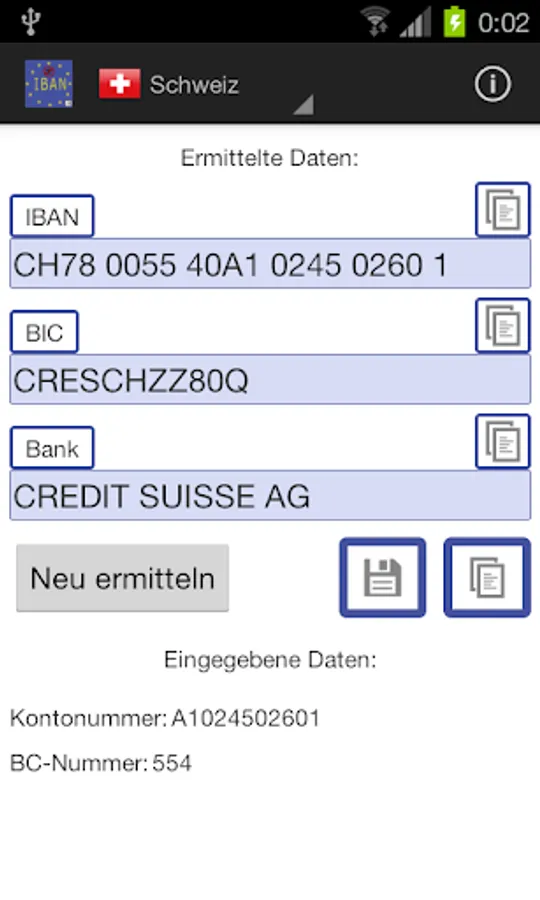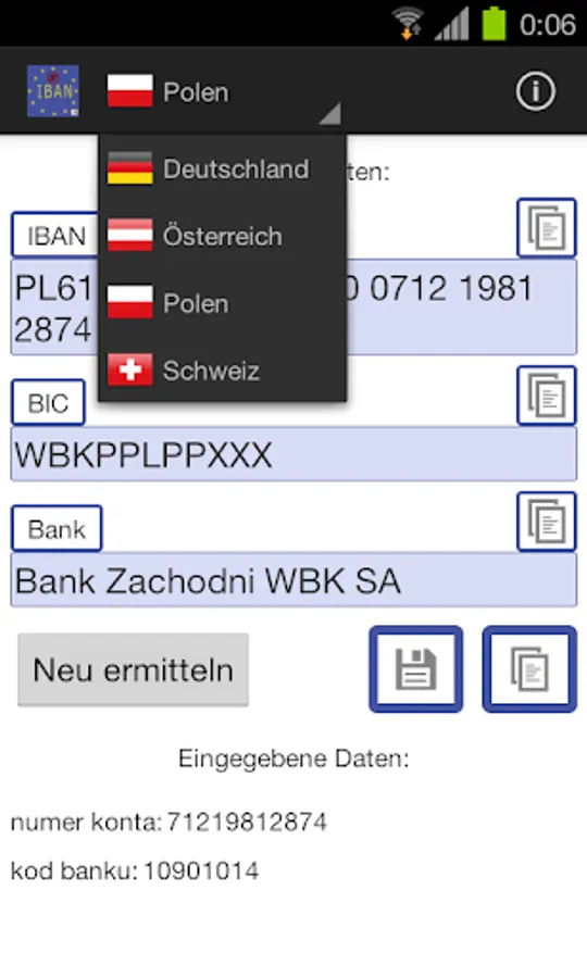 - copy-all-feature: calculated IBAN, BIC and name of the bank can be saved into the clipboard in one step