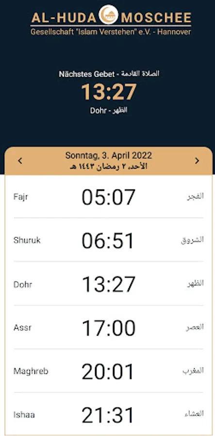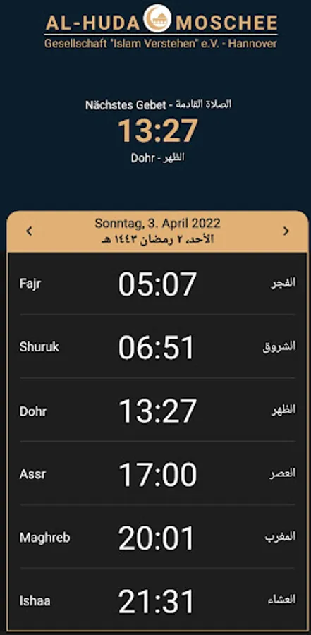 Prayer times app of the Al-Huda Mosque in Hanover