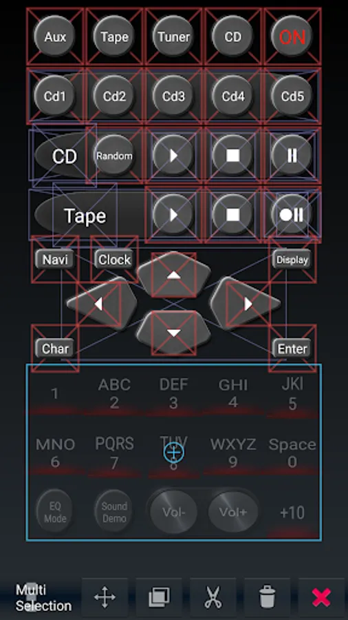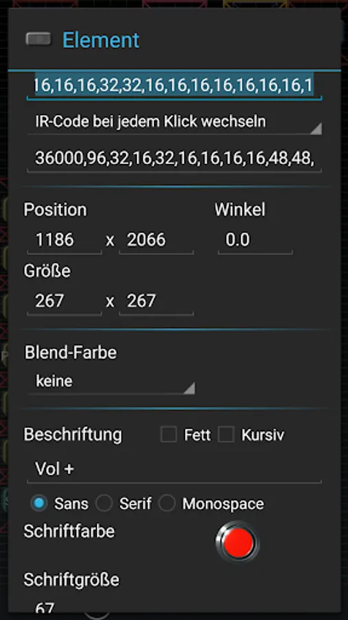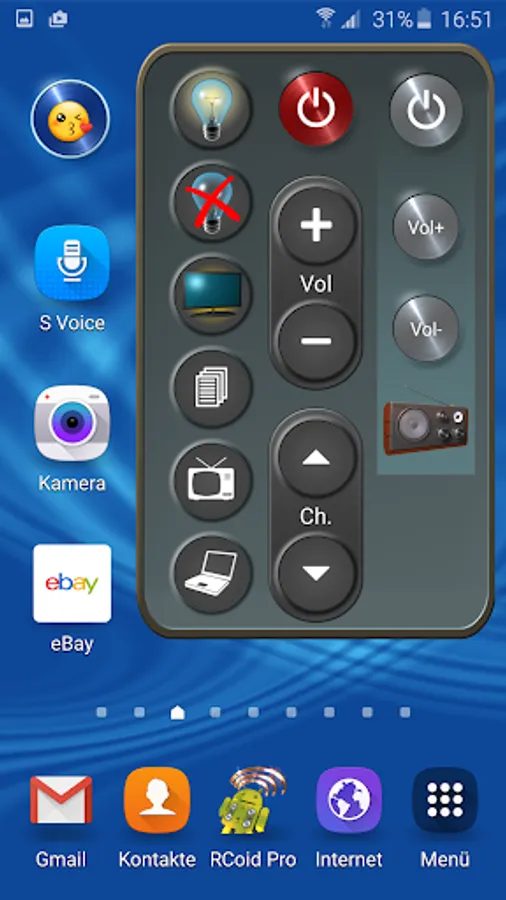Alternativ you can create your own IR remote control. You can decide the shape, the size, the rotation and the color of the buttons. The necessary IR-codes can you find in the internet.