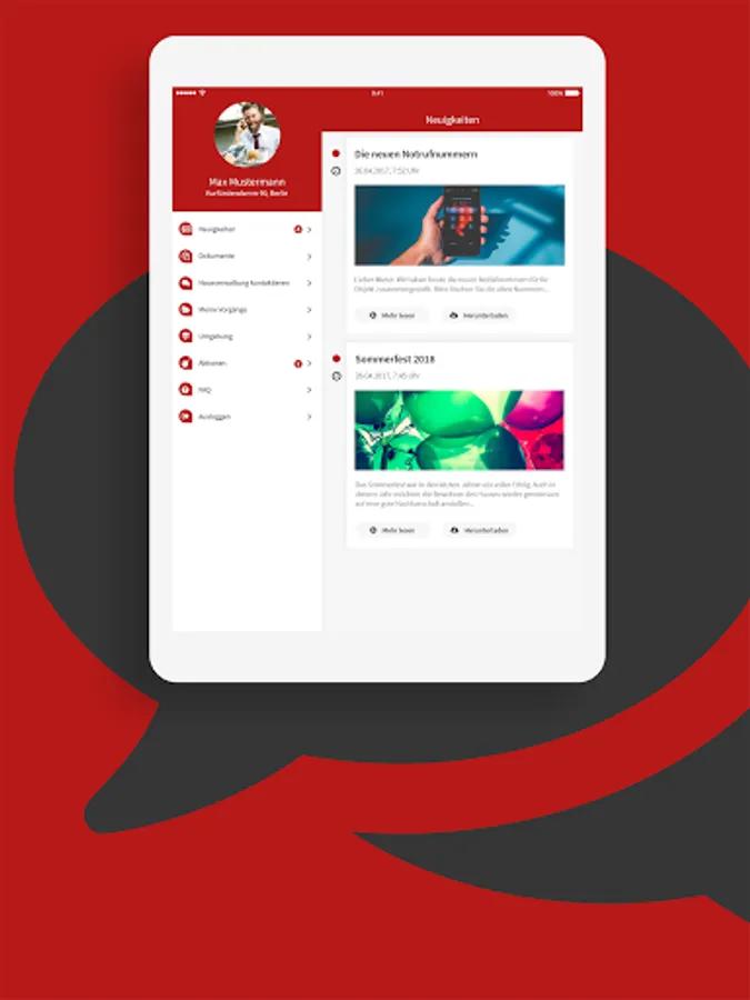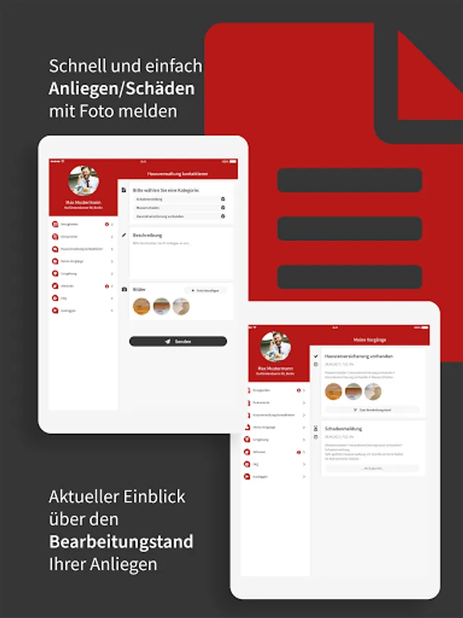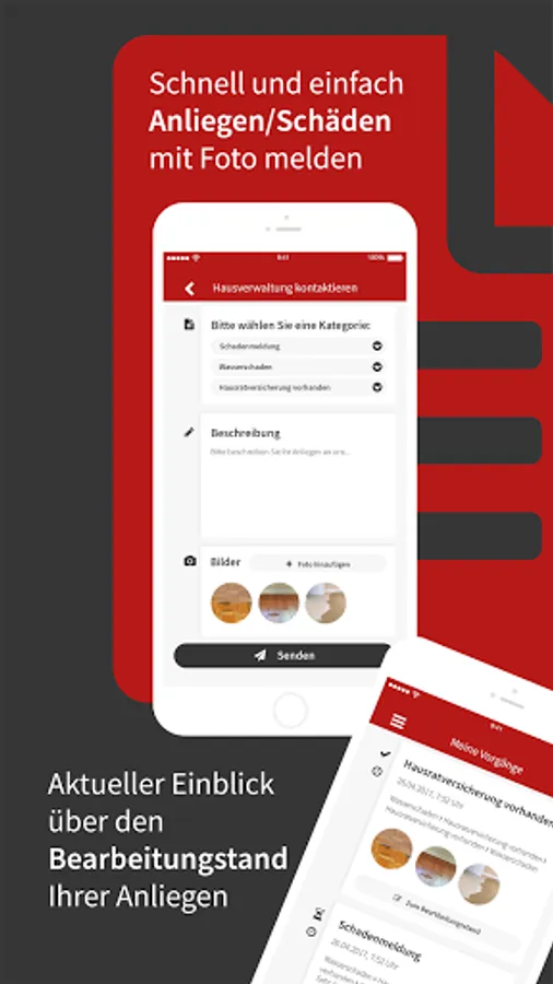 As a tenant or owner, you can report damage or concerns directly with photos via our app. Your inquiries are then available to our employees for processing and can also be forwarded to craft businesses.