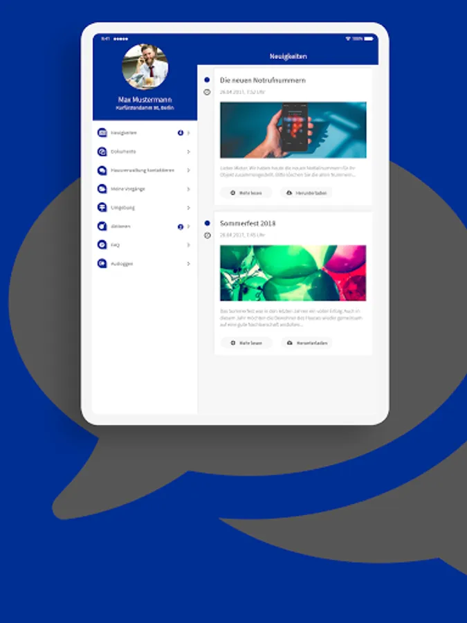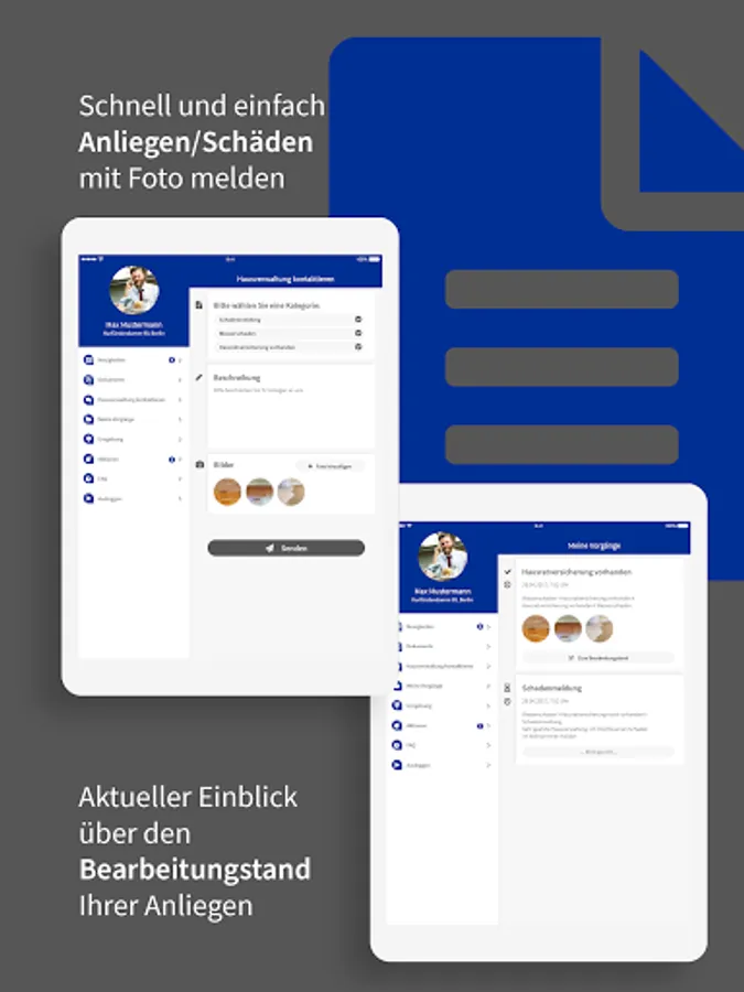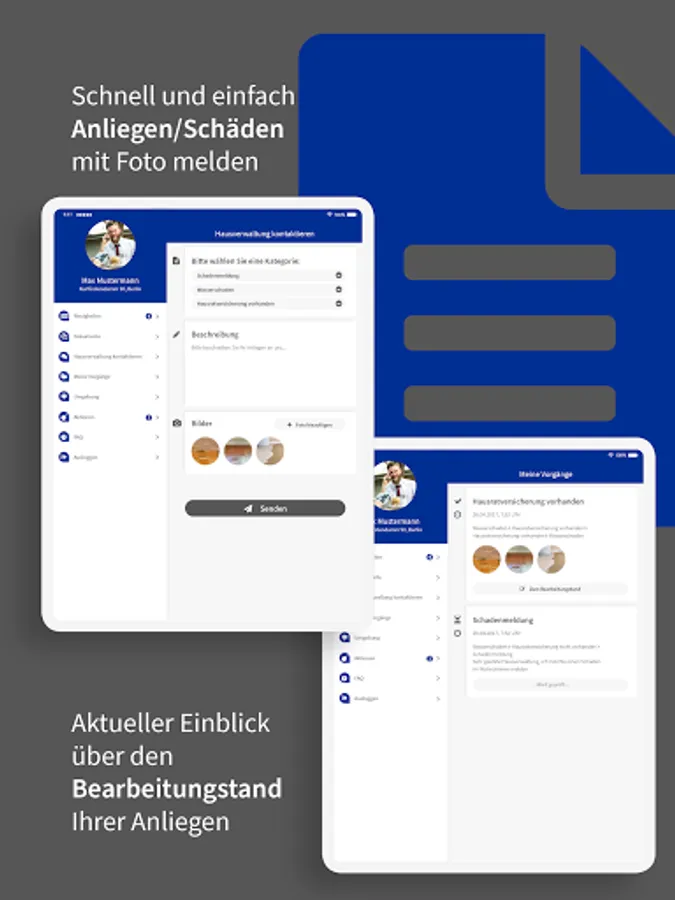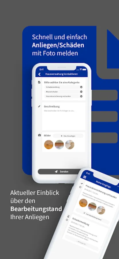 As a tenant or owner, you can report damage or concerns directly with photos via our app. Your inquiries are then available to our employees and can also be forwarded to craft businesses.