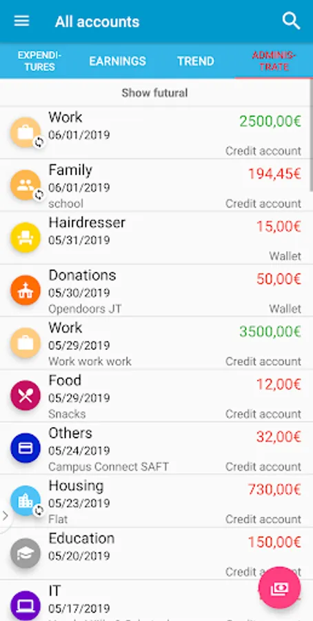 Track your earnings and expenditures from everywhere within 10 seconds! Add accounts and wallets, administrate earnings, expenditures and kategories all in a very comfort way.