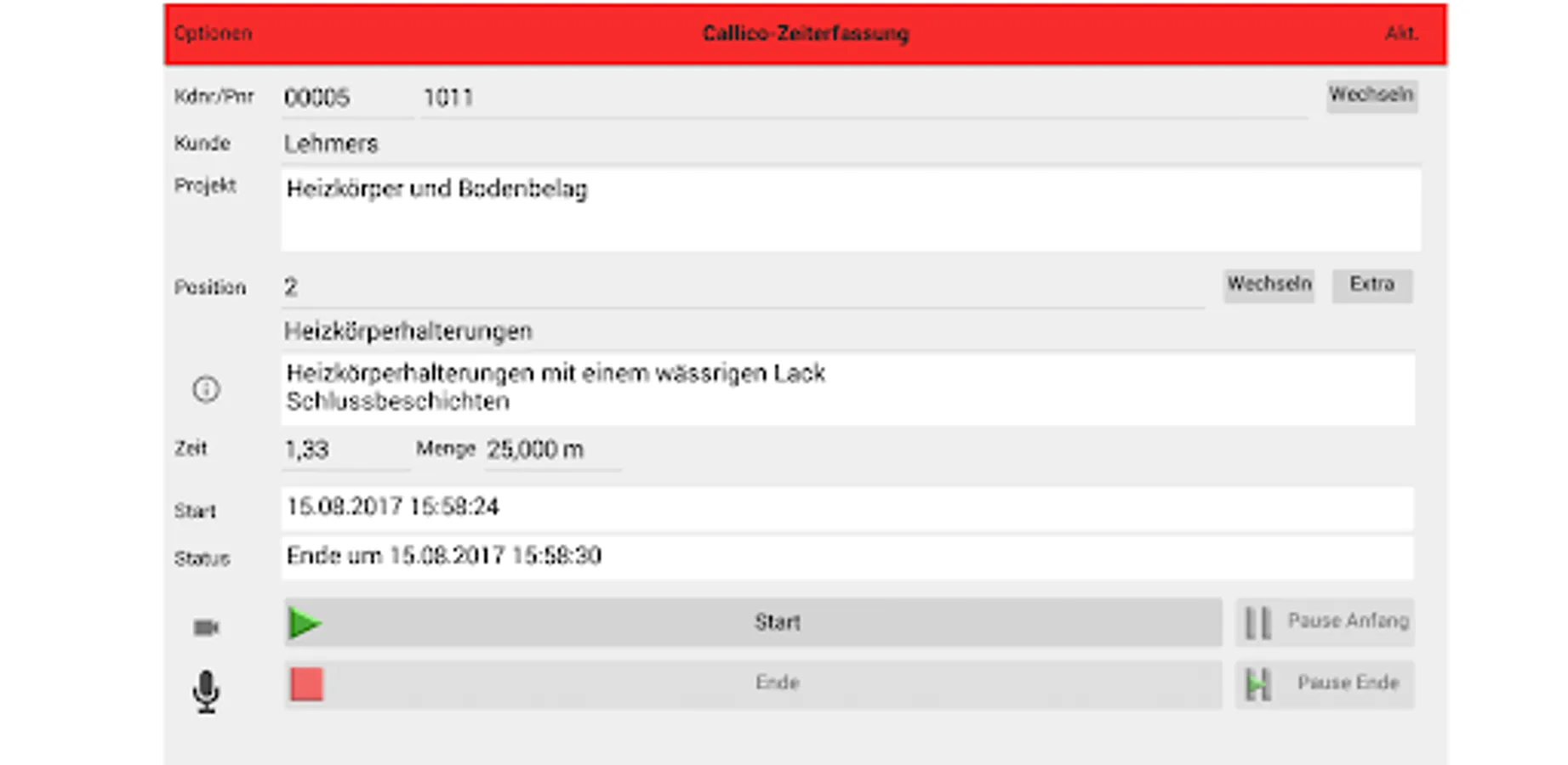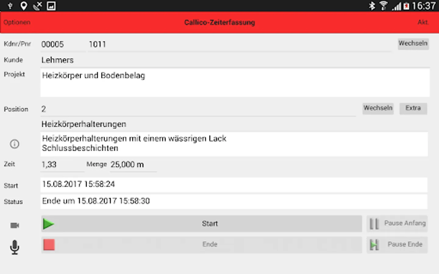 Everything at a glance. Pictures and photos for construction documentation. voice memos. extra works.
