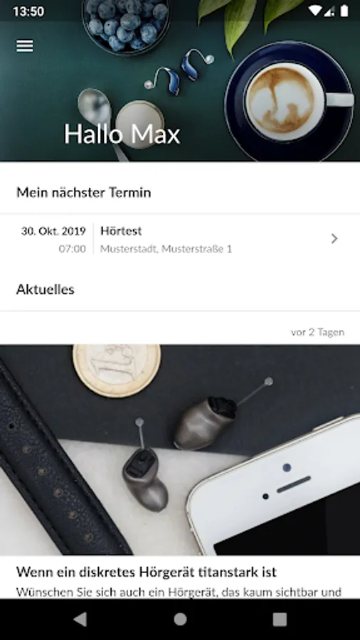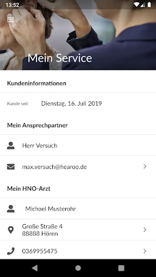 The direct connection to your hearing care professional - the digital service booklet for your smartphone. Keep track of all appointments and book appointments directly in the app. You will have access to all hearing aid information (battery size, warranty, date of purchase, etc.), your hearing (audiogram) and future and past service appointments. Upon request, you will receive up-to-date information on hearing aid innovations and individual offers from your branch. A call to your personal contact or hearing care professional is just a click away. More service, more comfort, more transparency - this is your modern service book.