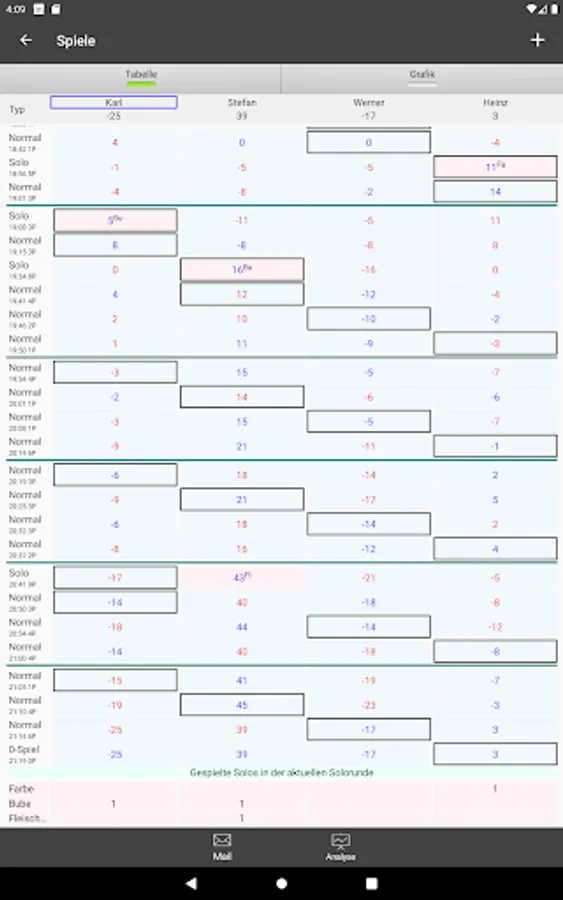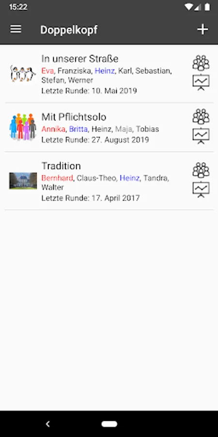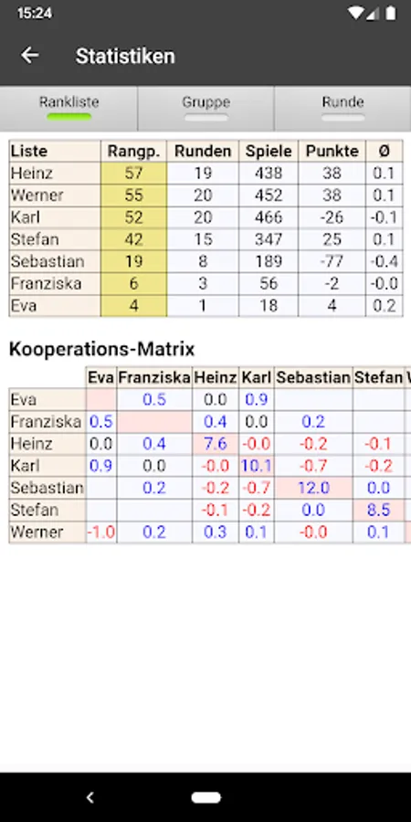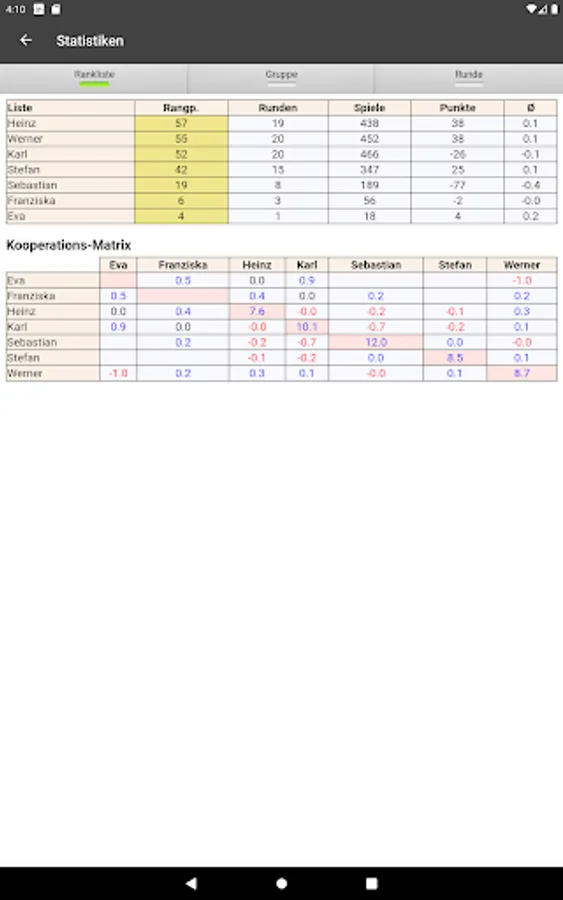 - Statistics for the whole group and for a round