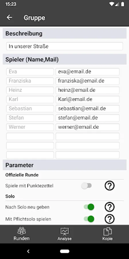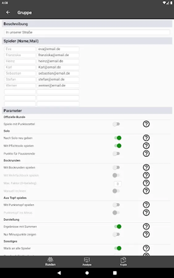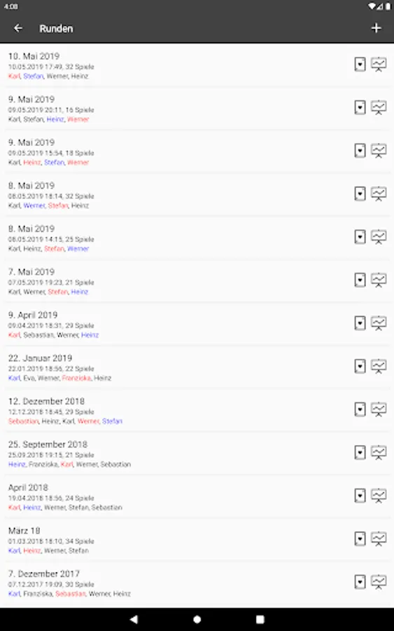 - Record any number of groups, rounds and games