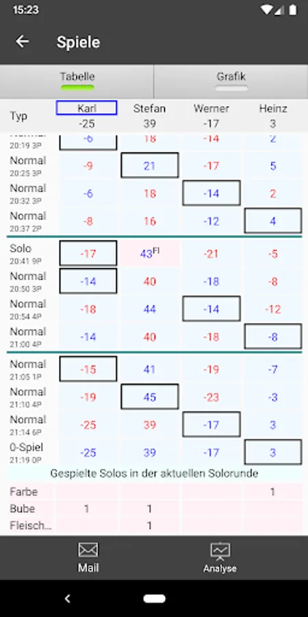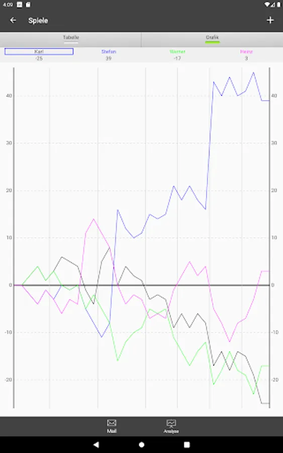 - Presentation of the games as a table or as a graphic