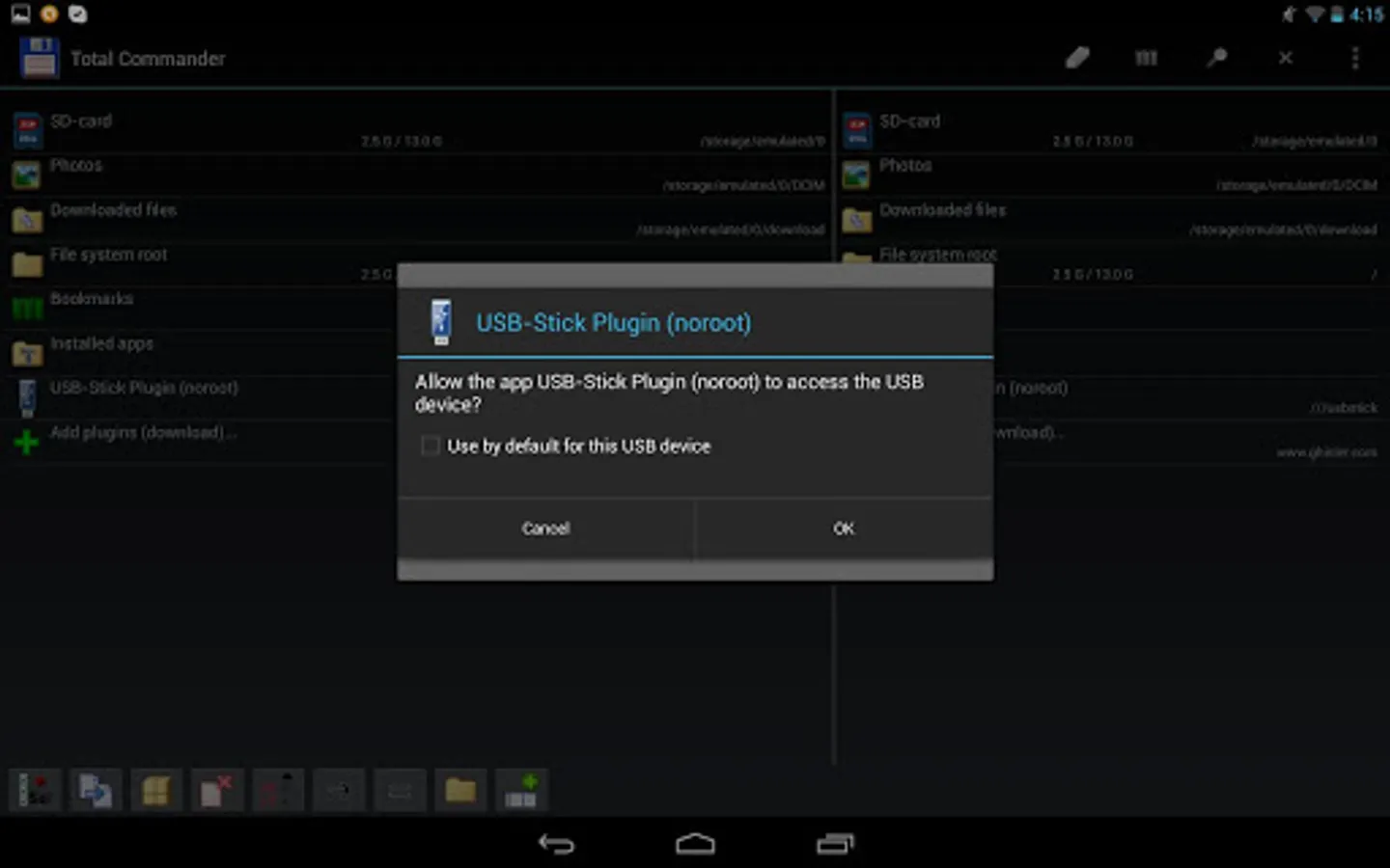 This Plugin is for tablets (like the Nexus 7 or Nexus 10) or phones (like Nexus 5) which have an USB OTG connector, but do not mount attached USB Sticks.