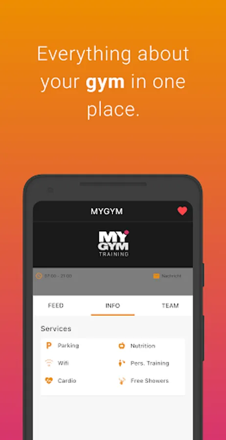 With your MYGYM app you are always in the loop on the goings on in your gym. Course schedules, Equipment and much more are available anytime. Want to visit another MYGYM gym? Get all the information on all gyms right here on your phone. Quick and easy.