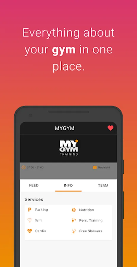 With your MYGYM app you are always in the loop on the goings on in your gym. Course schedules, Equipment and much more are available anytime. Want to visit another MYGYM gym? Get all the information on all gyms right here on your phone. Quick and easy.