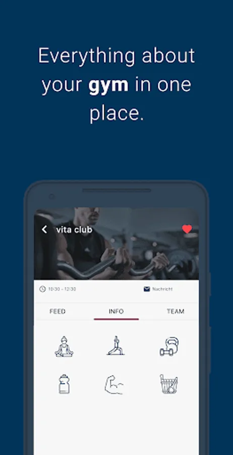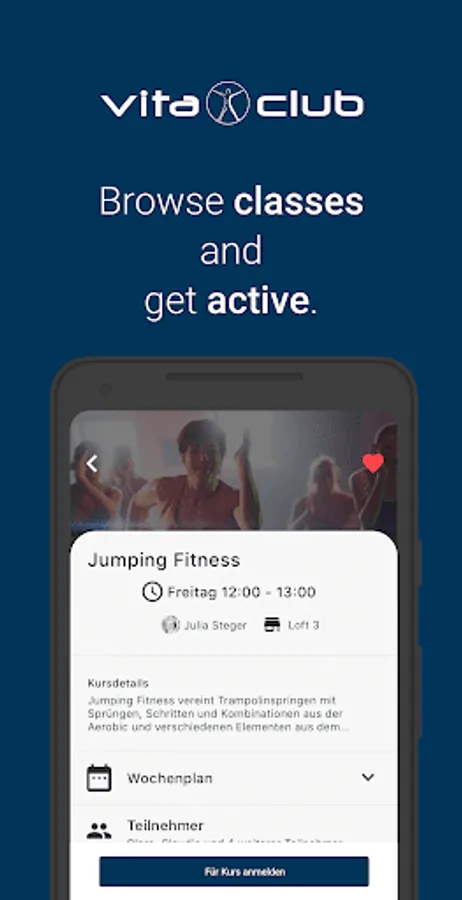 With your Vita Club app you are always in the loop on the goings on in your gym. Course schedules, Equipment and much more are available anytime. Want to visit another Vita Club gym? Get all the information on all gyms right here on your phone. Quick and easy.