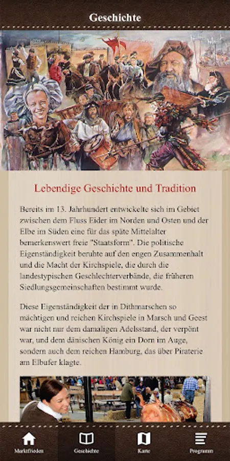 History: This is the right area for you if you are interested in the background to the market peace and would like to know what is behind the assembly of the 48 regents and the Dithmar Peasant Republic.