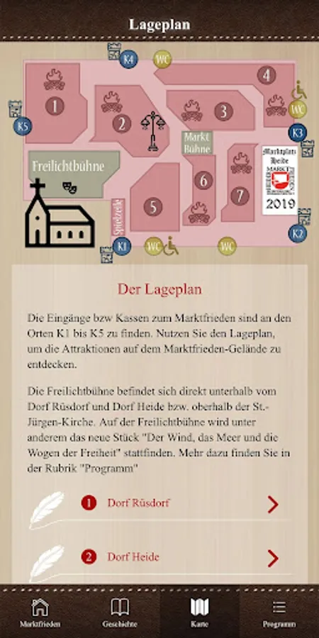 There will again be a companion app for the 16th market peace from July 8 to 10, 2022, which visitors can use to find out more about the festival before and during the market peace. The app is divided into four different areas.