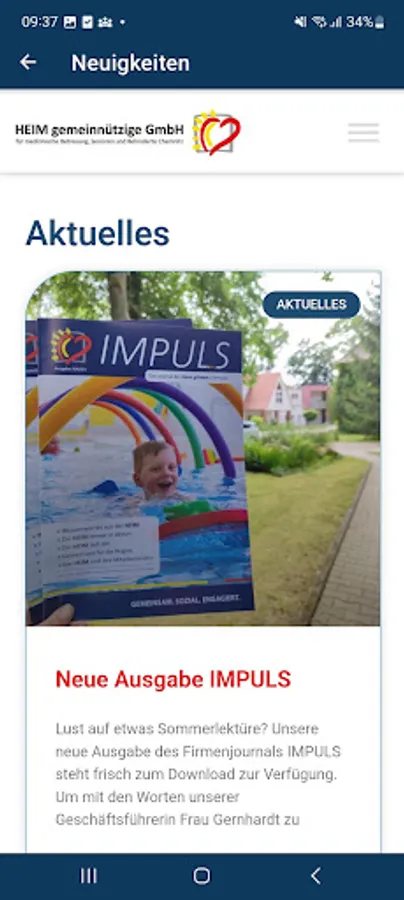 The app offers all users information about the individual facilities and their contact details. In addition, current news can be followed, uncomplicated access to the career portal and to the company's Facebook and Instagram pages is made possible. This offer is supplemented with access to the company journal “Impuls”, which is published at regular intervals.