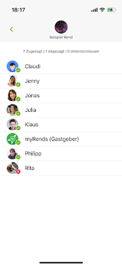 So you always have the opportunity to see who is participating in your rend. You are always up to date via push messages, even if your guests decide differently at short notice.