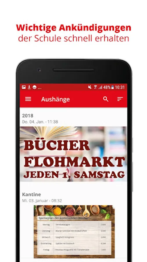 Important notices as well as information about school events, pictures of school trips or videos of the last school performance can be found in this area. All innovations in everyday school life can be viewed here at any time.