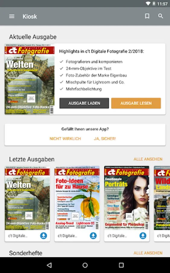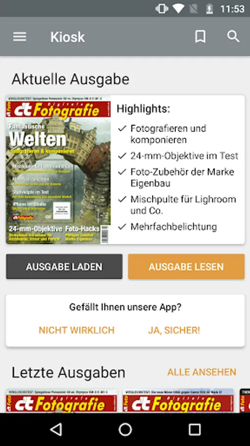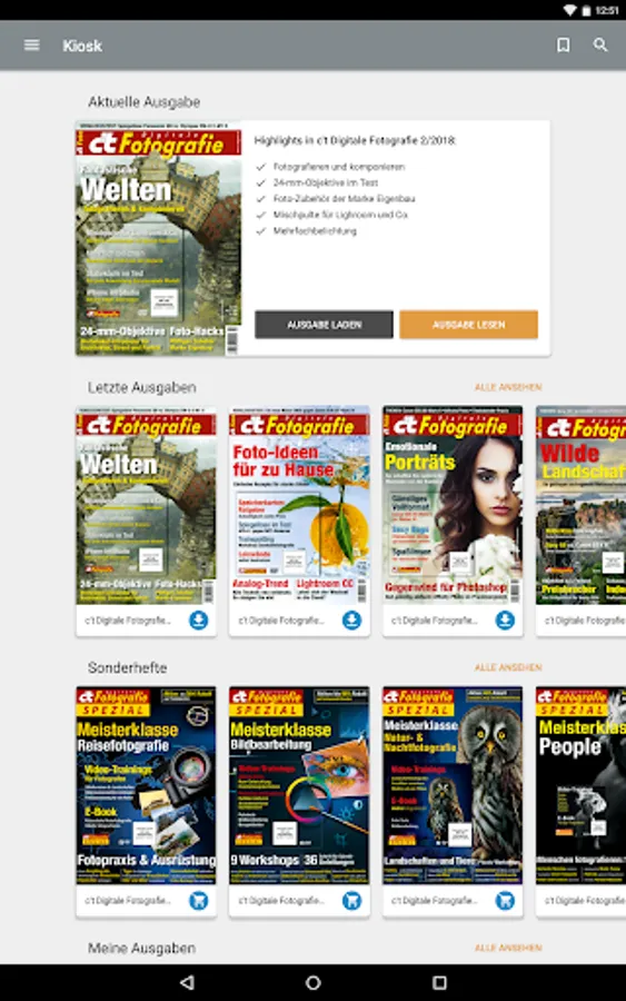 Download the app today. If you do not know c't photography yet, we will provide you with a free copy as an excerpt in the app.