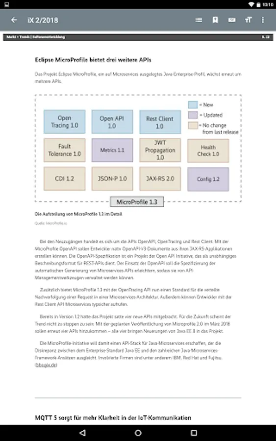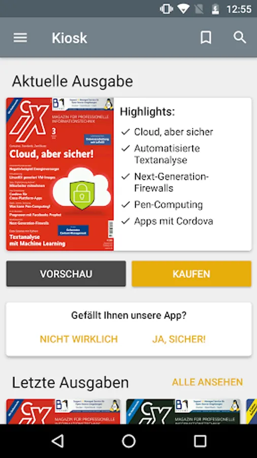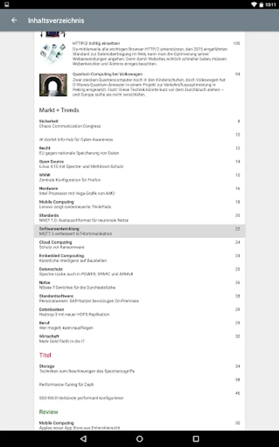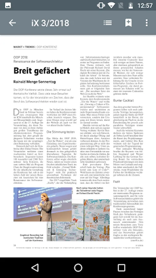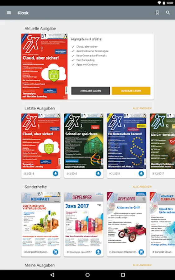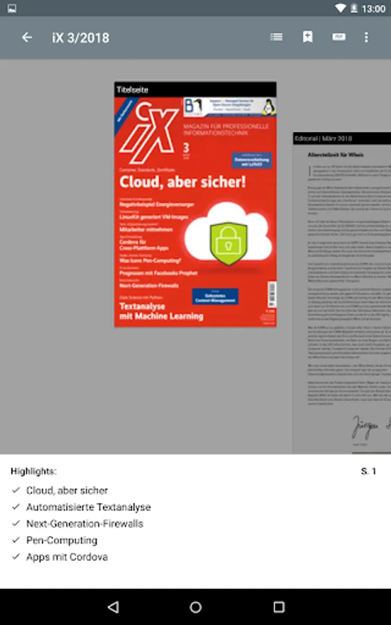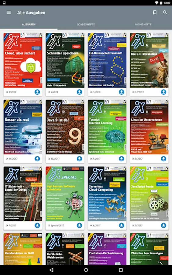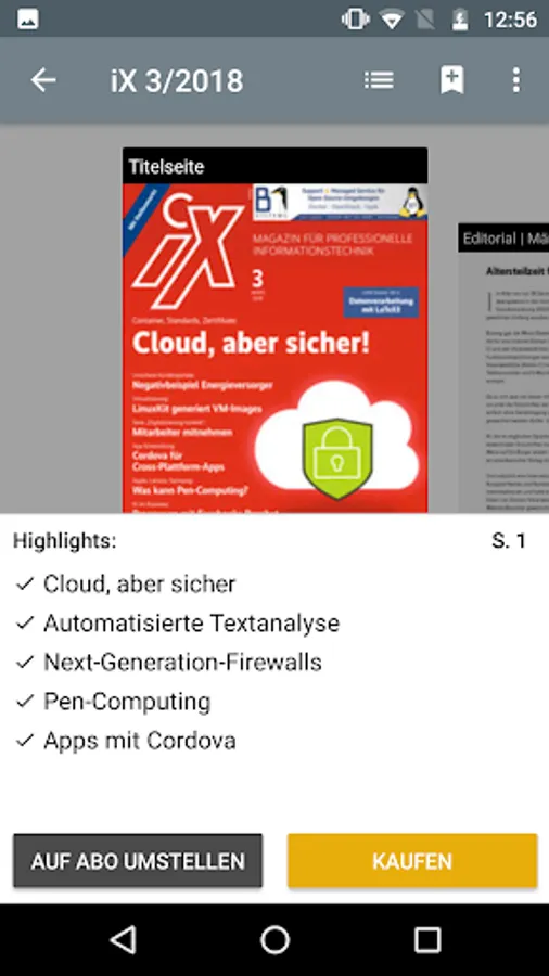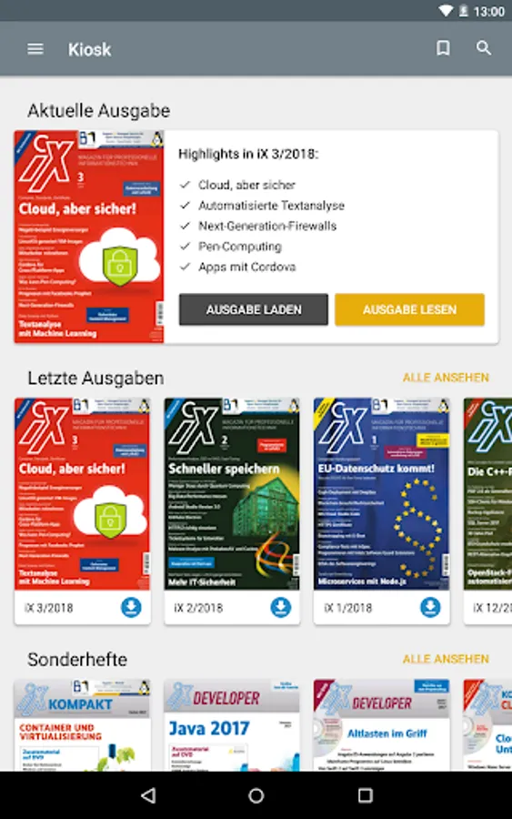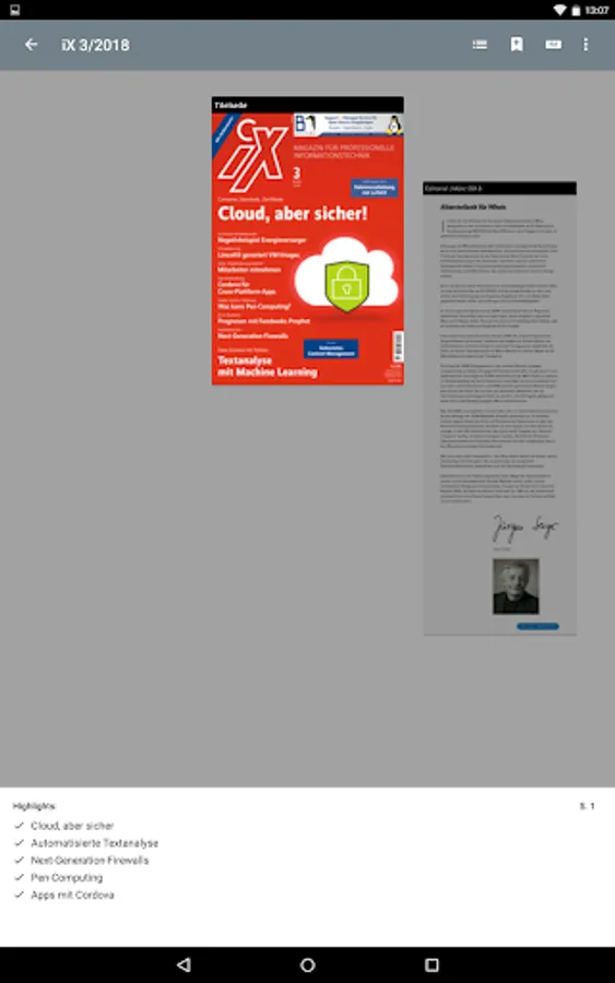 With this app, you read iX, the magazine for professional information technology, in the original layout of the print edition or in HTML reading mode on your smartphone or tablet.