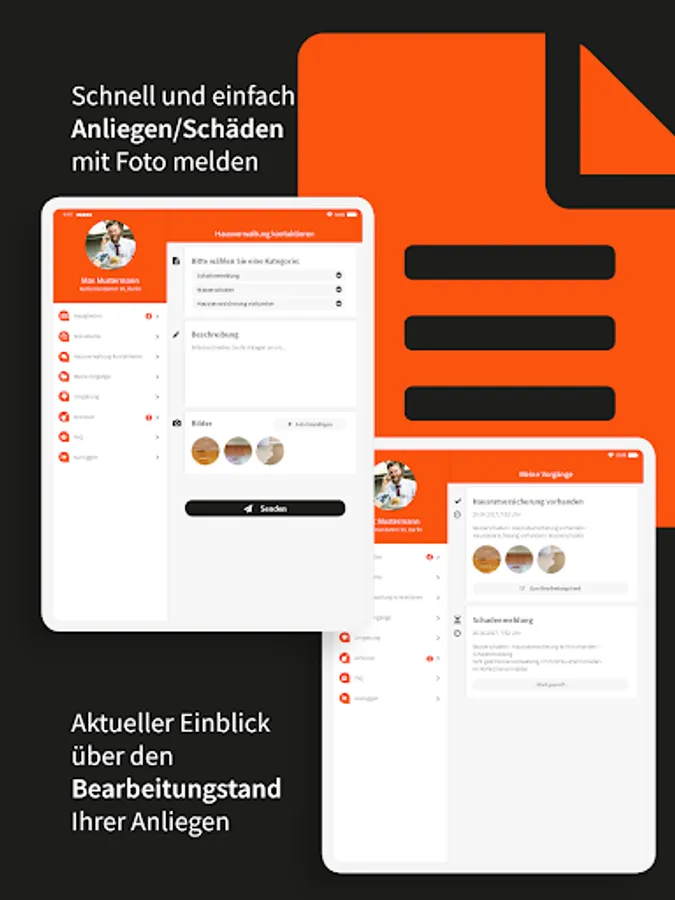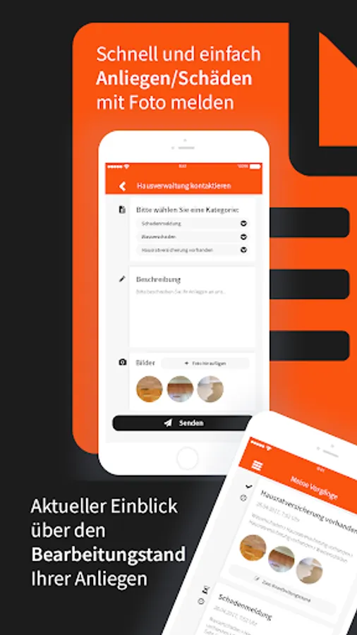 As a tenant or owner, you can report damages or concerns directly with photos via our app. Your inquiries are then available to our employees for processing and can also be forwarded to craft businesses.