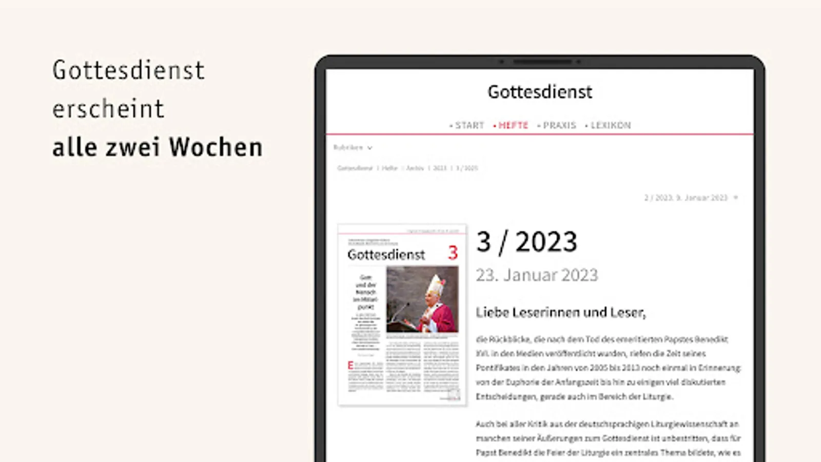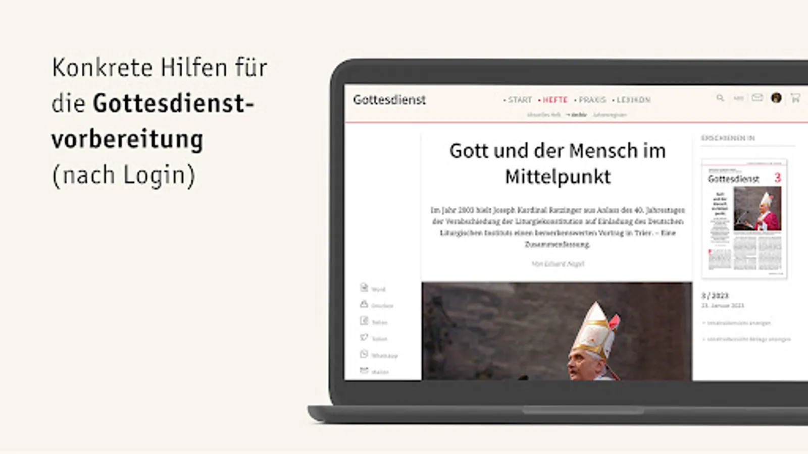 Your liturgical journal: With Divine Worship you have a competent companion with valuable text suggestions and working aids that will support you in your efforts to organize worship celebrations appropriately. The Worship magazine is aimed at priests, deacons and religious, pastoral and parish consultants, church service officers and liturgy groups, church musicians and all others who are involved in the celebration of the service.