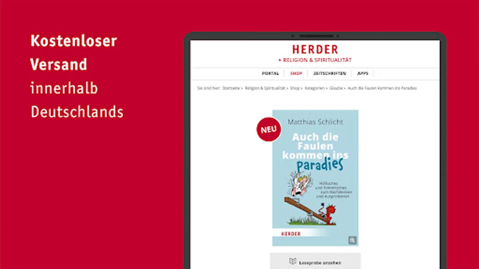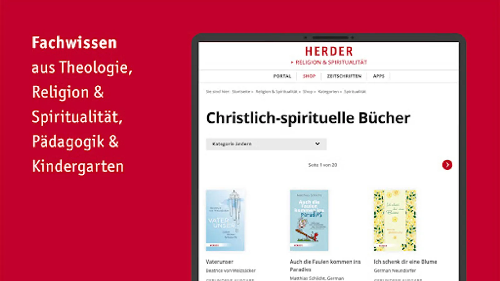 At Verlag Herder, openness to new things and a sense of tradition characterize encounters with readers and booksellers. The spectrum of products ranges from aesthetically designed books and numerous magazines to innovative, interactive apps.