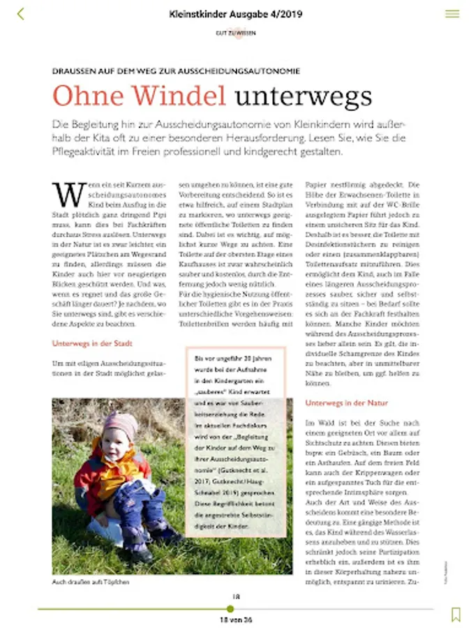 With the magazine "toddlers in day care and day care," you have everything on hand what you need for your daily work with children under three years: age appropriate and diverse practice ideas as well as in-depth knowledge about the relevant topics of micro Childhood Education. You get the latest news, events and media tips for your work with children under three.