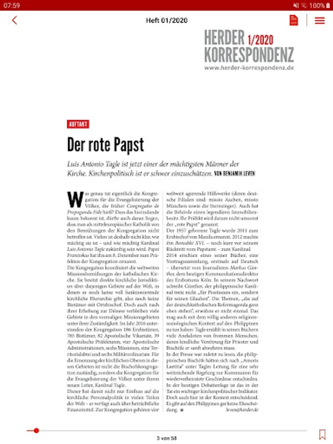 The Herder correspondence is not some Catholic magazine. She stands in German-speaking countries and beyond for level, seriousness and independence in reporting on church and religion.