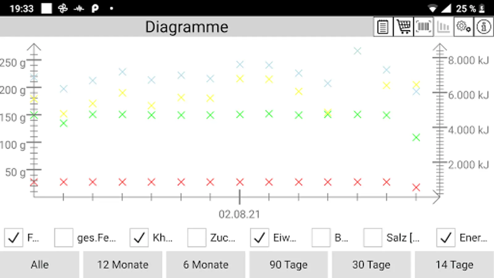 You decide for yourself which nutritional goals you want to achieve on a daily basis. See at a glance how your diet has developed over the past few days, weeks, and months.